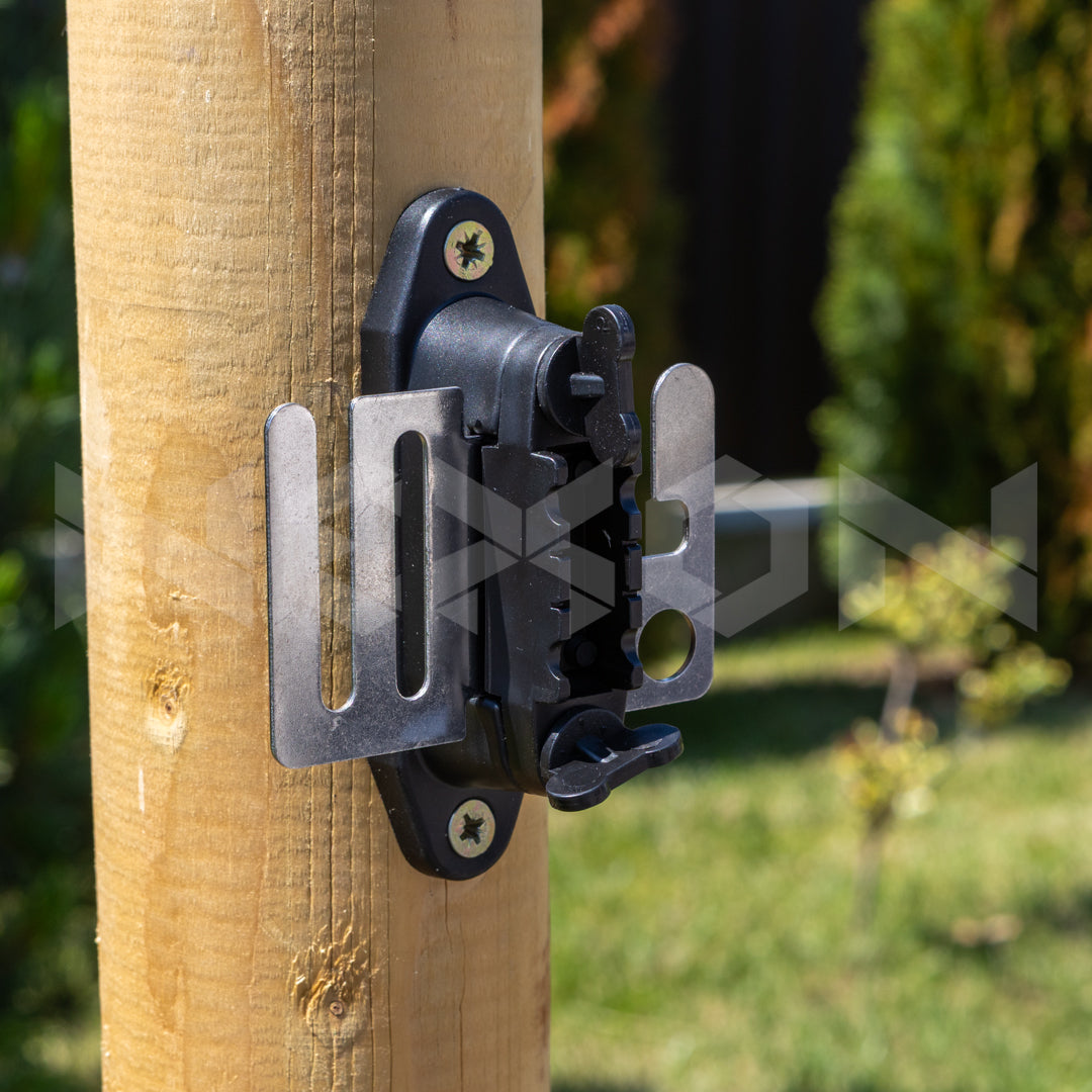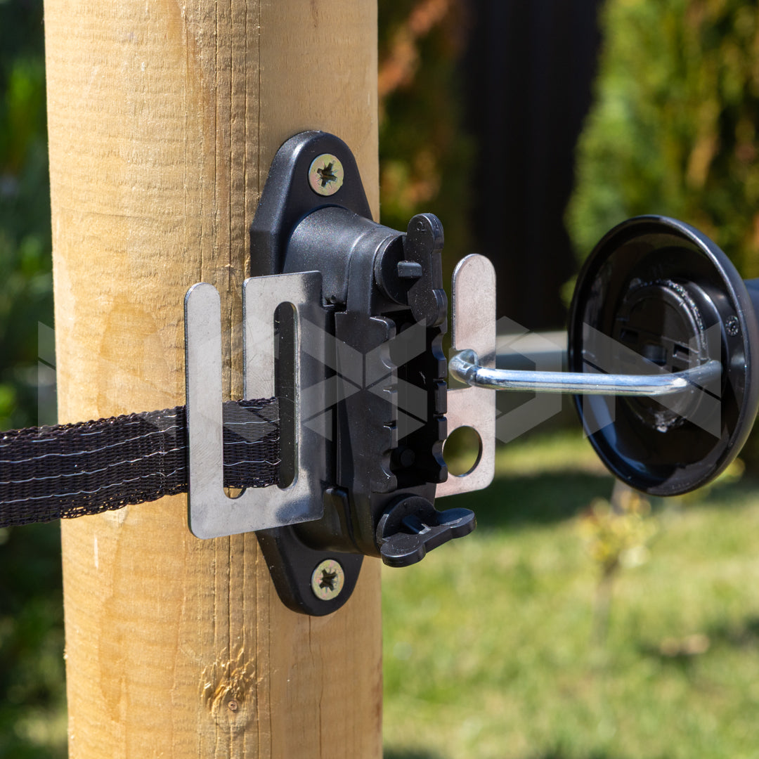 - Izolator de bandă robust, cu placă de conectare din inox pentru mănerul porții.