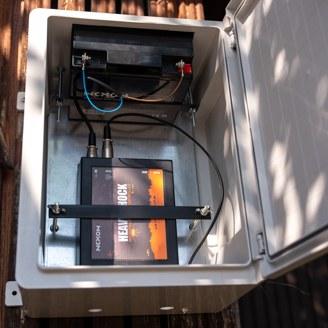 Pulsatorul de gard electric și acumulatorul sunt situate în cutia de protecție, cablurile de conexiuni și panoul solar sunt montate pe cutie. Dumneavoastră trebuie doar să fixați cutia pe o suprafață stabilă, restul accesoriilor având locul asigurat.