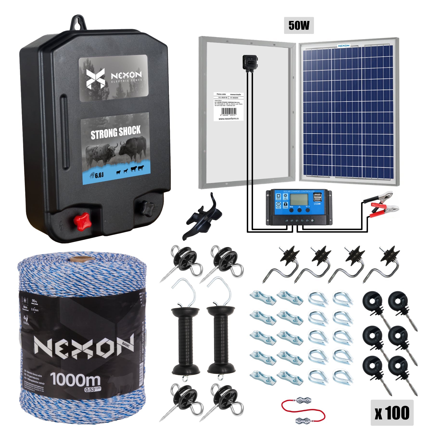 Pachet gard electric PREMIUM, NEXON StrongShock 6.6J cu Panou Solar și fir de 1000m