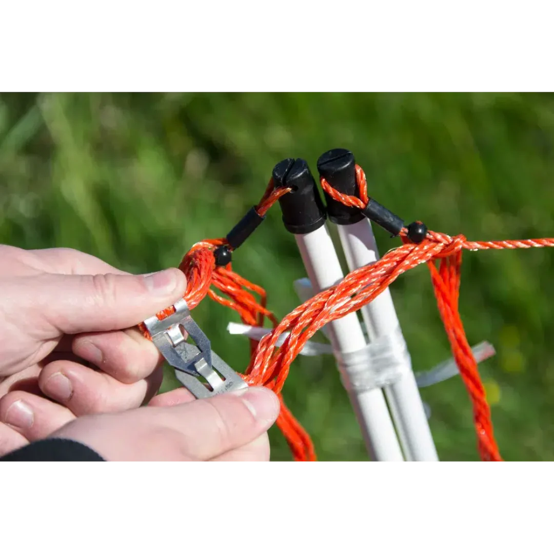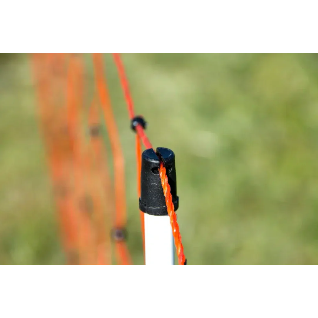 Plasa de gard electric NEXON este soluția ideală pentru animale de talie mică, precum oi, câini, porci, găini și altele. Potrivită pentru utilizare temporară datorită ușurinței în mutare. Setul include 14 stâlpi din plastic, cu noduri rezistente. Curentul electric circulă prin întreaga plasă, cu excepția firului de jos, prevenind pierderile de tensiune.