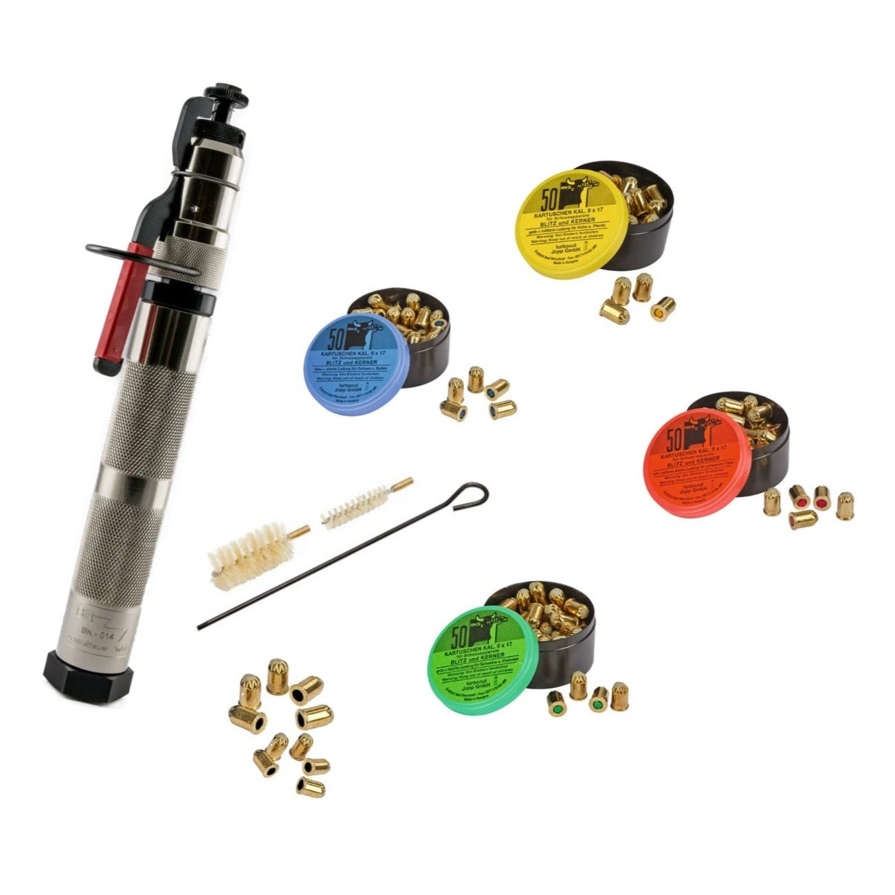 Capsele pentru asomator au calibru de 9 x 17 mm.