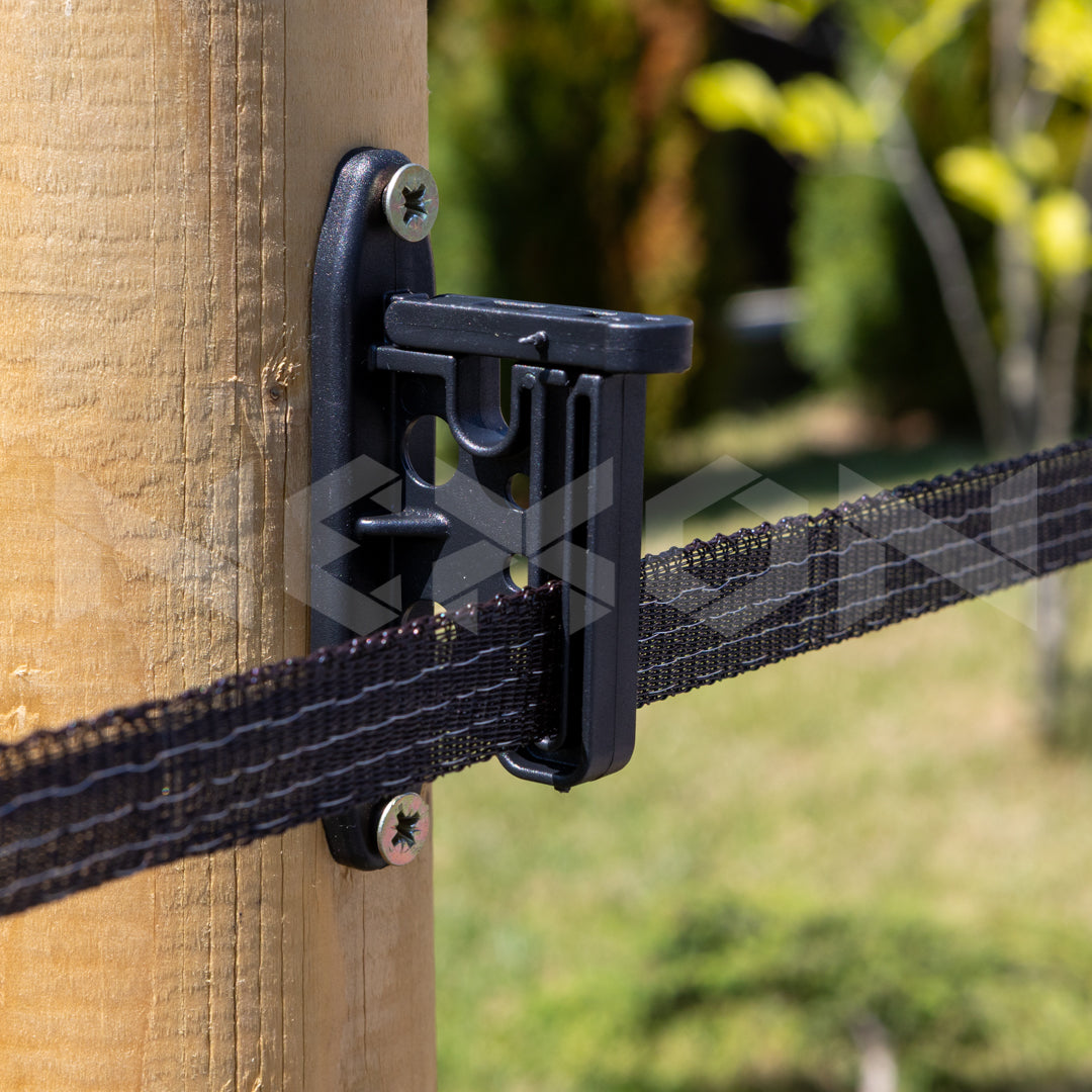 Izolatorul plat NEXON este ideal pentru segmentele de gard electric, oferind stabilitate și rezistență îndelungată.