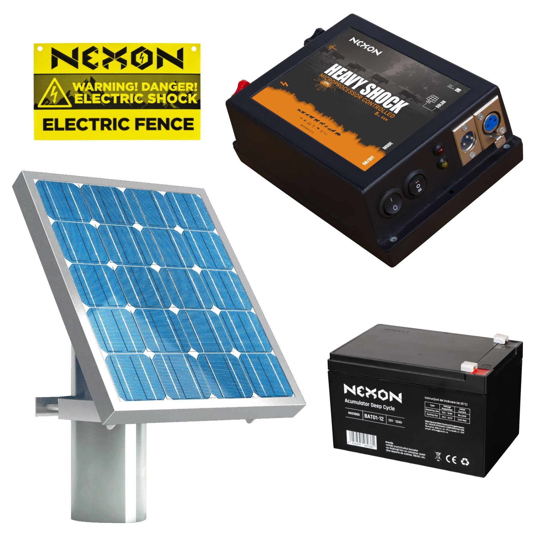 Kit gard electric NEXON HeavyShock PRO 2.5J solar și baterie