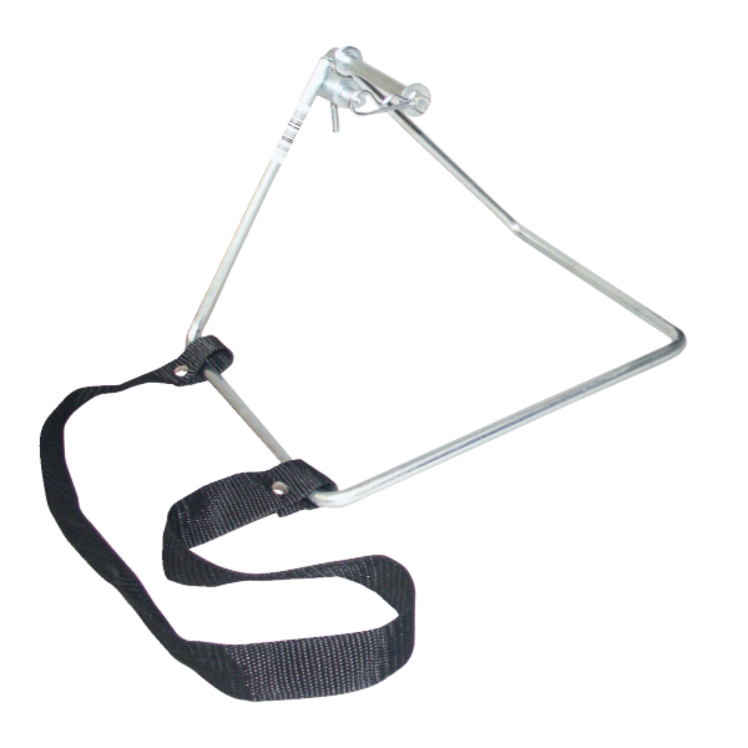 Suport metalic cu centură pentru rolă de adunat fir sau bandă.